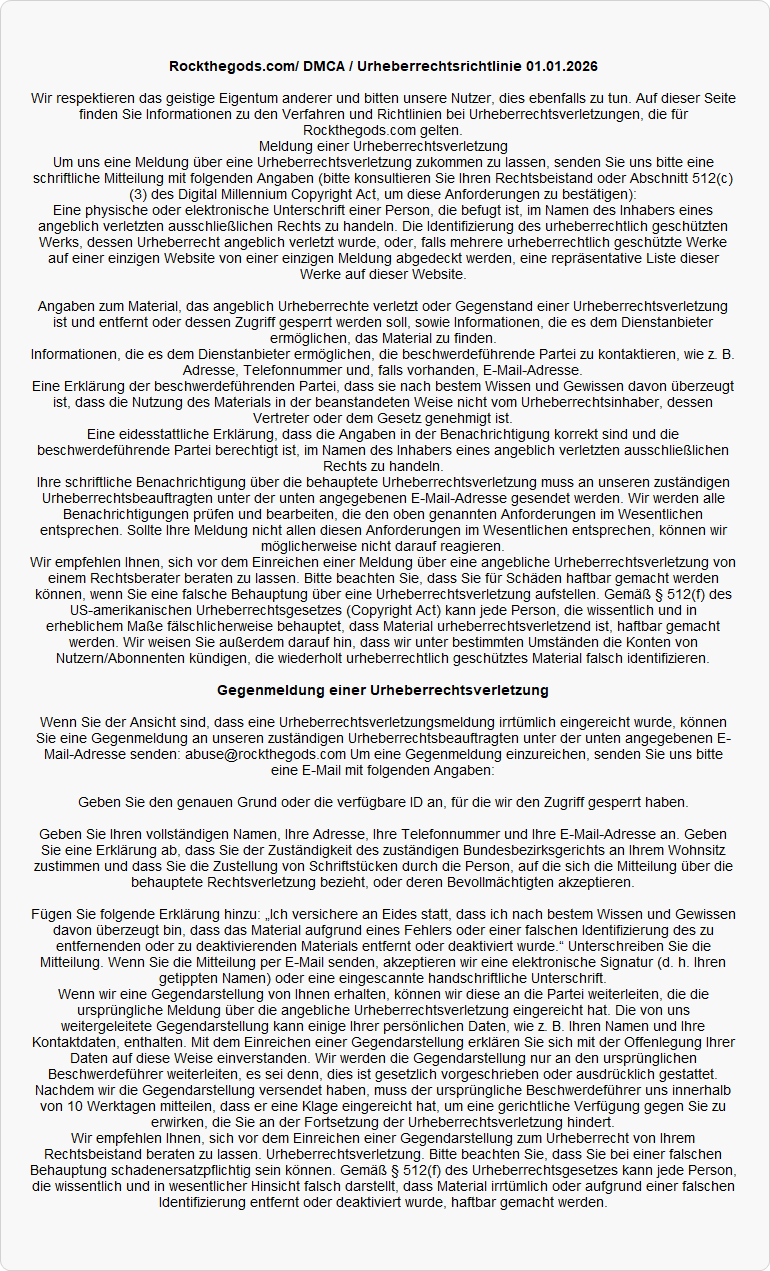 Urheberrechtlich geschützt © 2026 Rockthegods.com